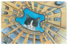 Открытка акварель России Хабаровск Вокзал Монумент Ерофею Павловичу Хабарову
